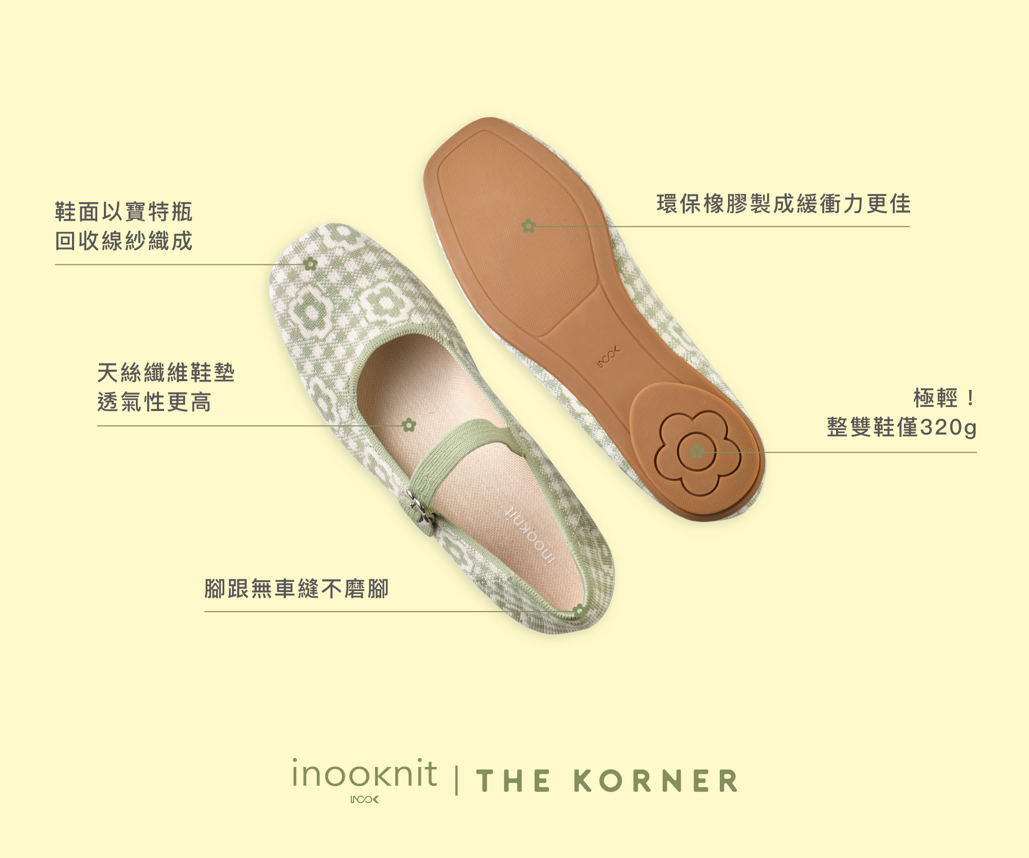 Inooknit X The Korner's first collaboration introduces the 'Herb Mary Jane Flats,' featuring a plaid floral knit jacquard designed by both brands and adorned with delicate floral buckles. The design is French vintage yet fresh and cute.