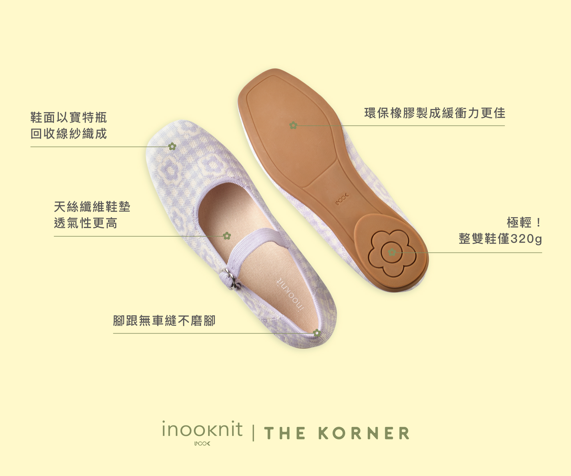 Inooknit X The Korner's first collaboration introduces the 'Herb Mary Jane Flats,' featuring a plaid floral knit jacquard designed by both brands and adorned with delicate floral buckles. The design is French vintage yet fresh and cute.