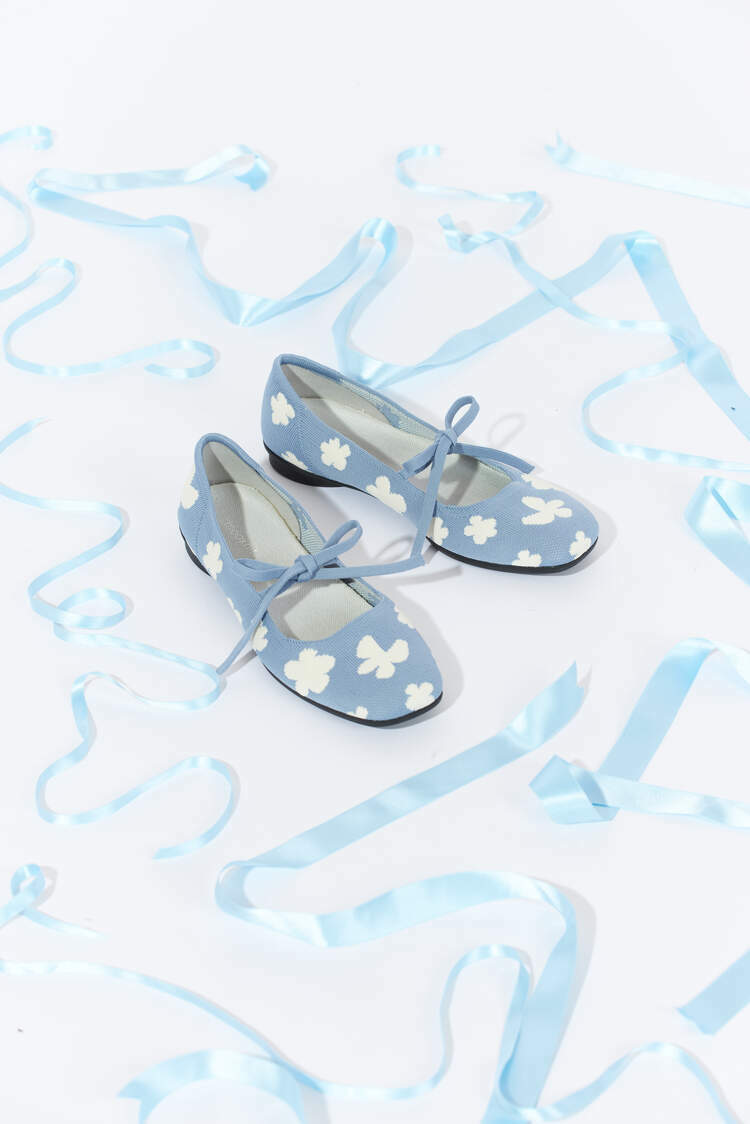 小花平底鞋以方頭娃娃鞋為基底,結合綁帶蝴蝶結和澎澎花朵提花,搭配亮眼吸睛的撞色,充滿少女細節的設計,為妳打造可愛滿點的獨家款式!