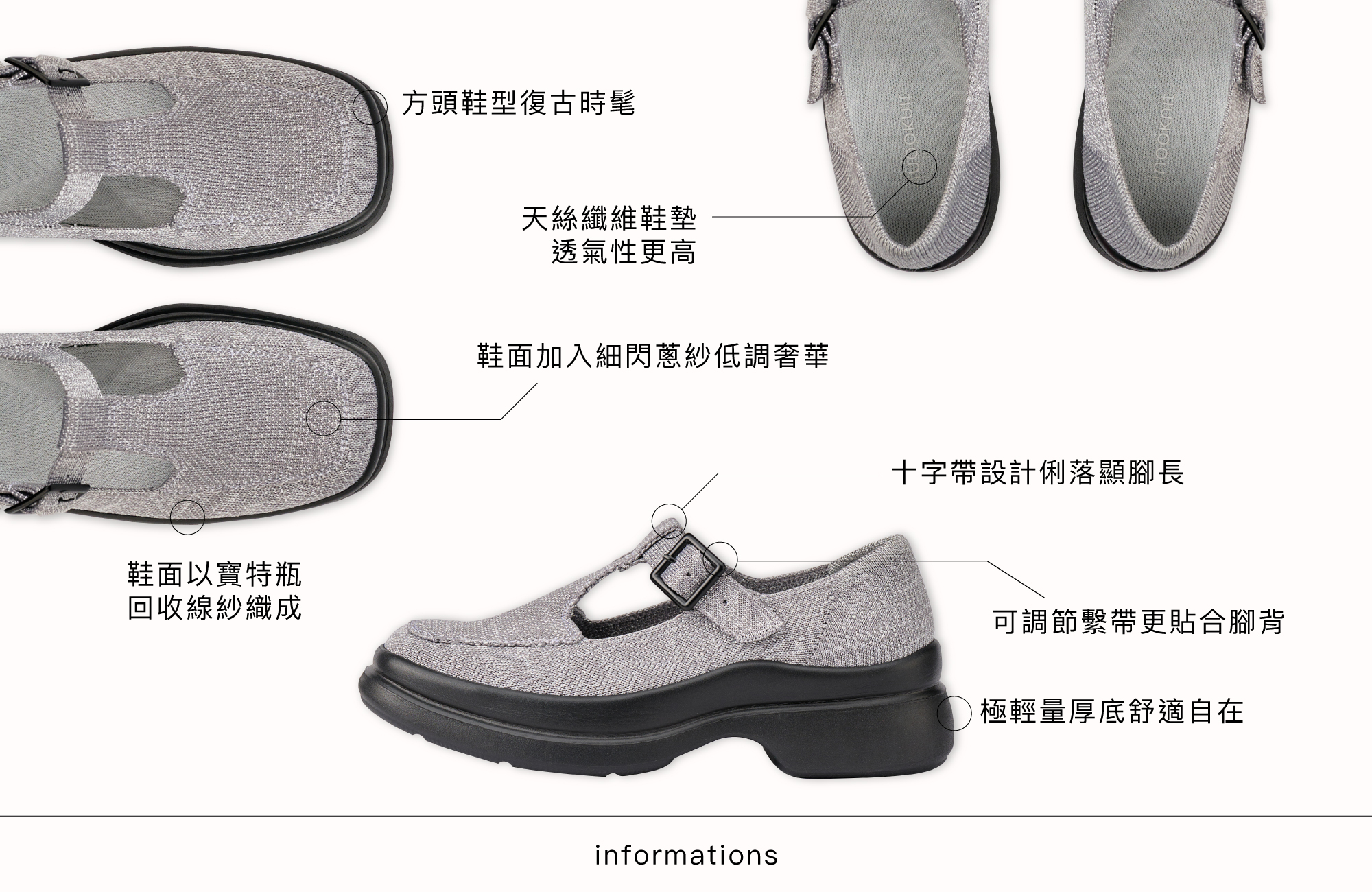 鞋底:獨家緩震彈性厚底鞋底