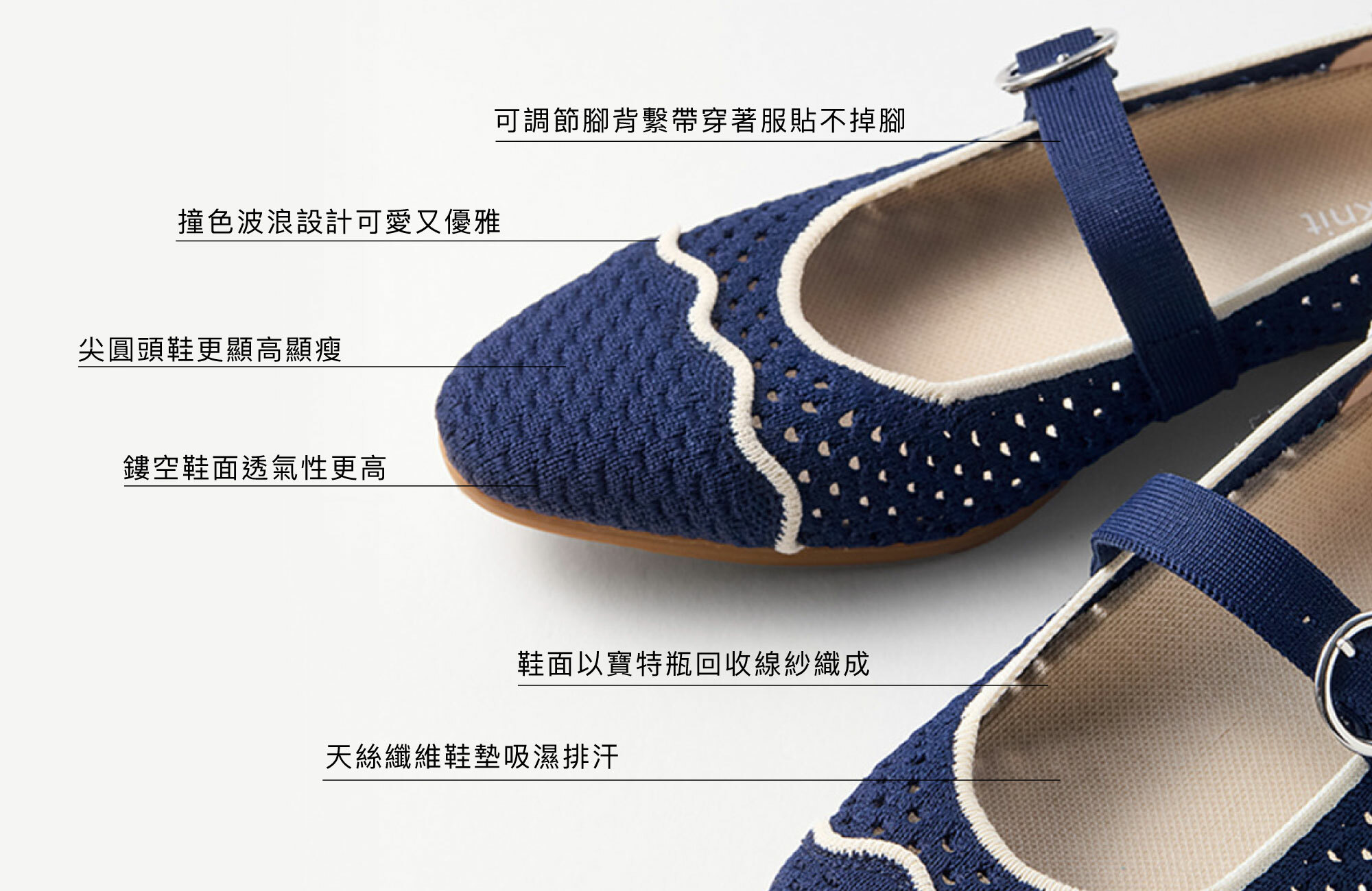 波浪鏤空平底鞋 海軍藍